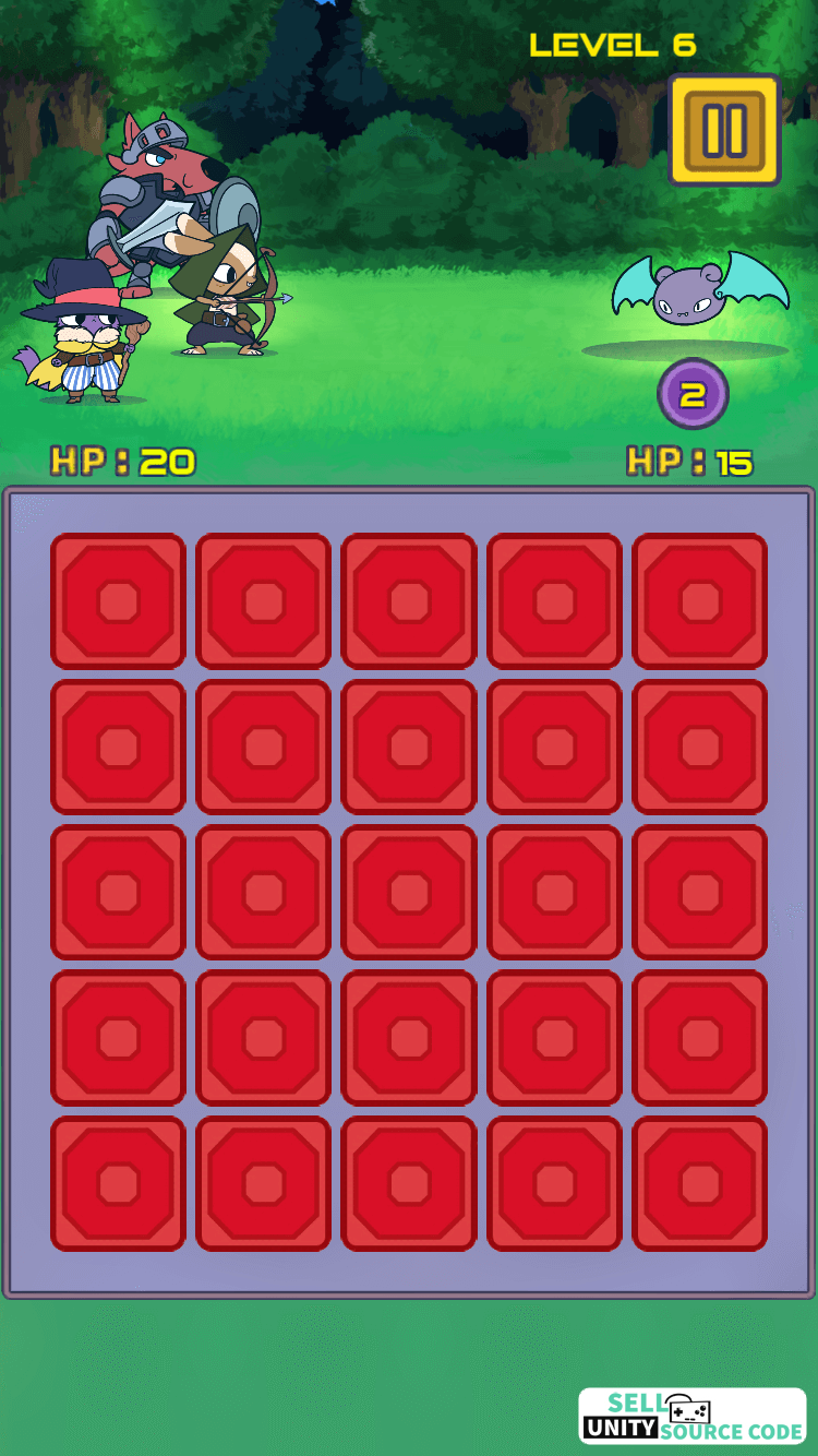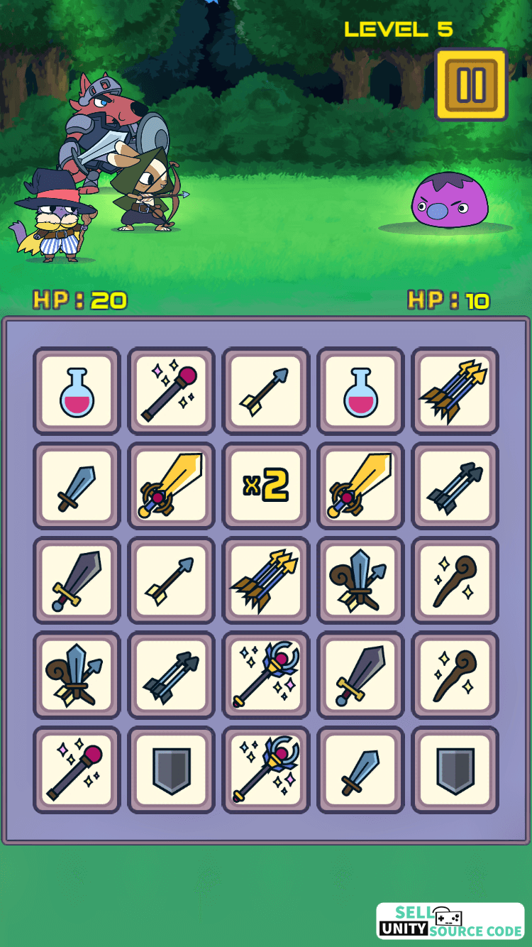 Help our heroes fight all the monsters by matching the same cards. Matching Cards Hero Puzzle Game using Unity 2019 or above. Demo APK: https://drive.google.com/file/d/1Hf3cP6iok5lY3P1Bepz-oMdEX-IR2Zi1/view?usp=sharing Features *******Feature****** Addicting game play. Unity 2019 or above. Easy reskin. Integrate Admob. Clean code, full C# with comment. Fun graphics. Amazing sound track. Collect coins. 15 levels and boss mode. Full guide to make you own game.