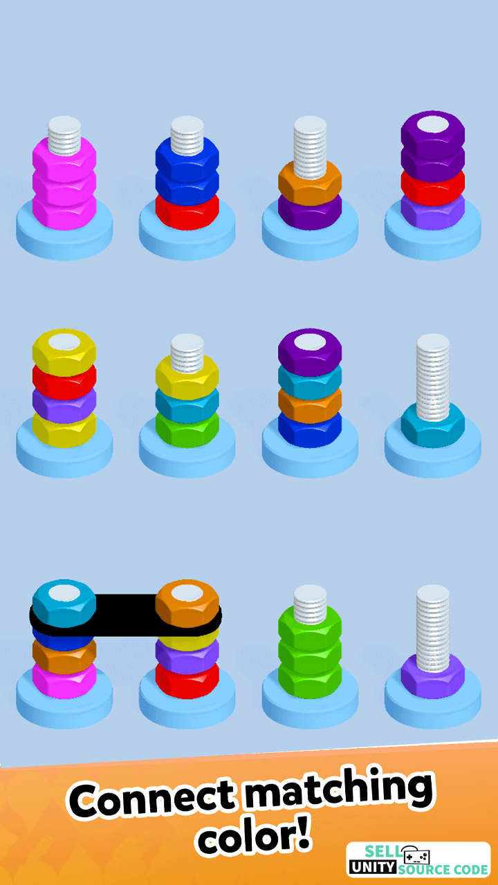 The goal of this sort puzzle game is easy yet fun: Sort the nuts? so that nuts of the same color are stacked on top of each other!