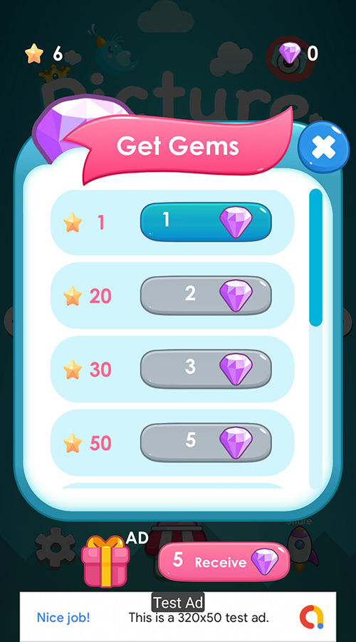 • Rewarded Ads (get free gems)