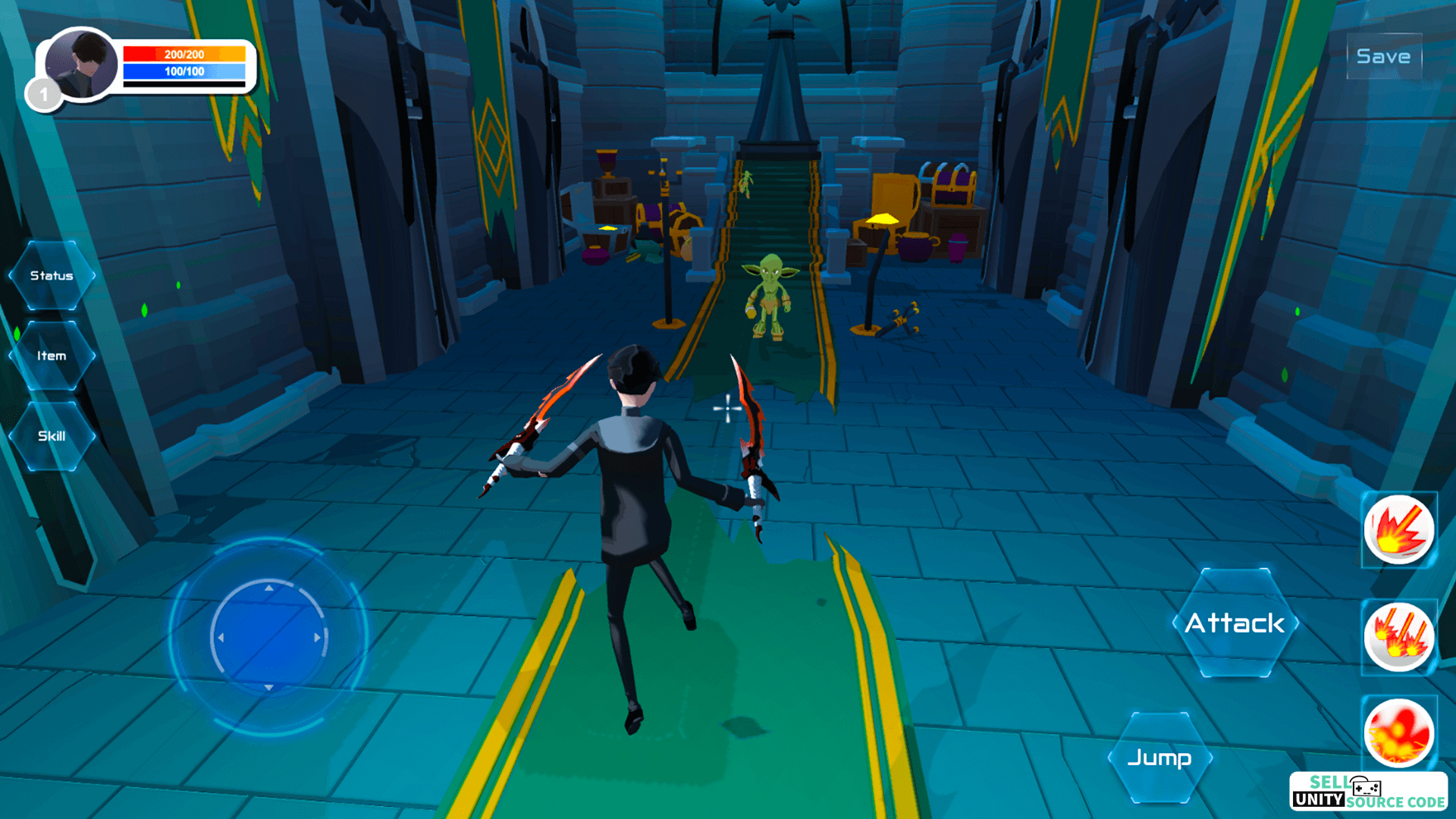 Solo to high level it’s an rpg action game with 4 big levels and different stylized dungeon item and weapons with save and load system and easy to add levels and enemies