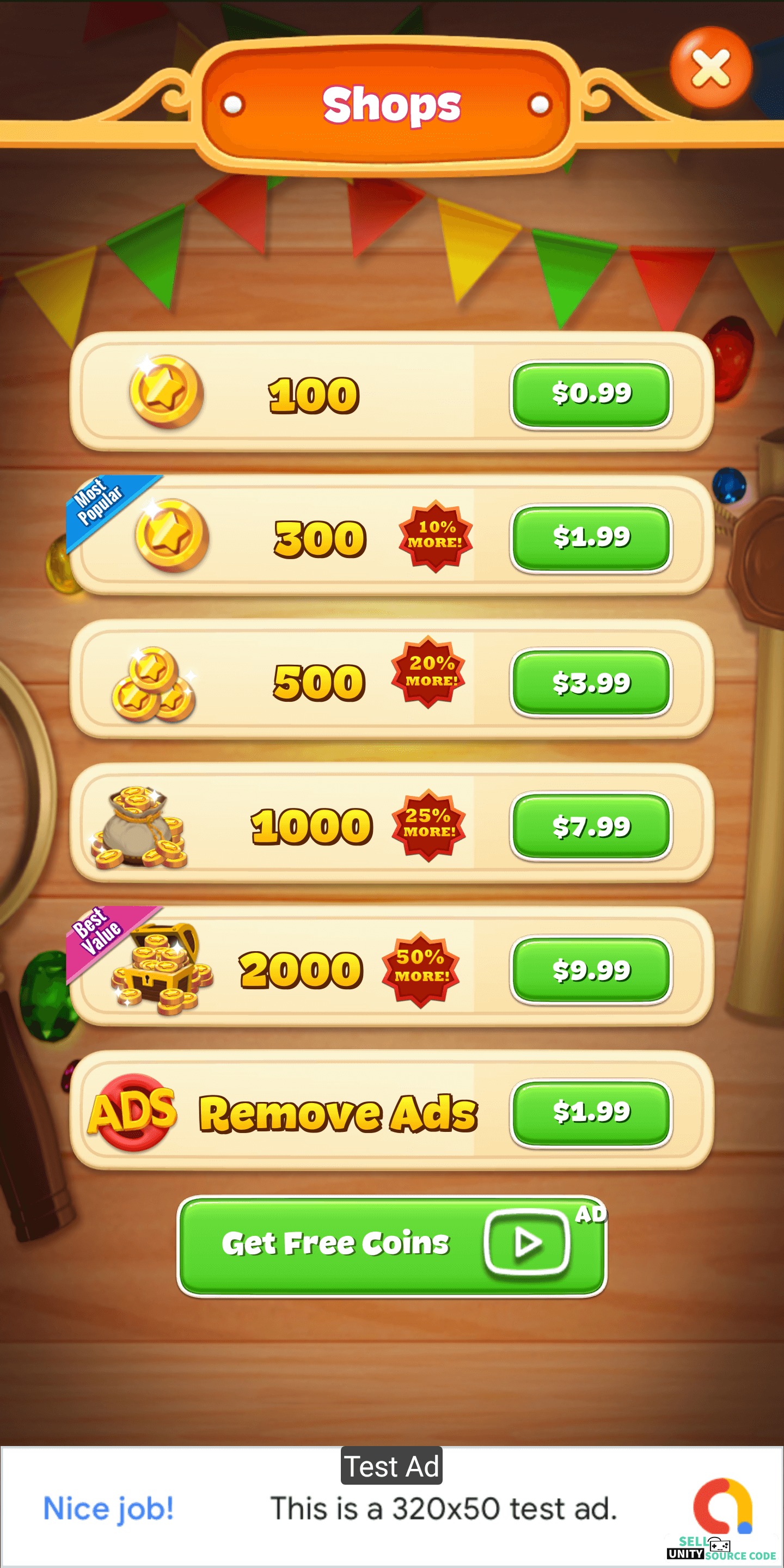 - Unity IAP Systems: Players can purchase coins on the game store, RemoveAds.