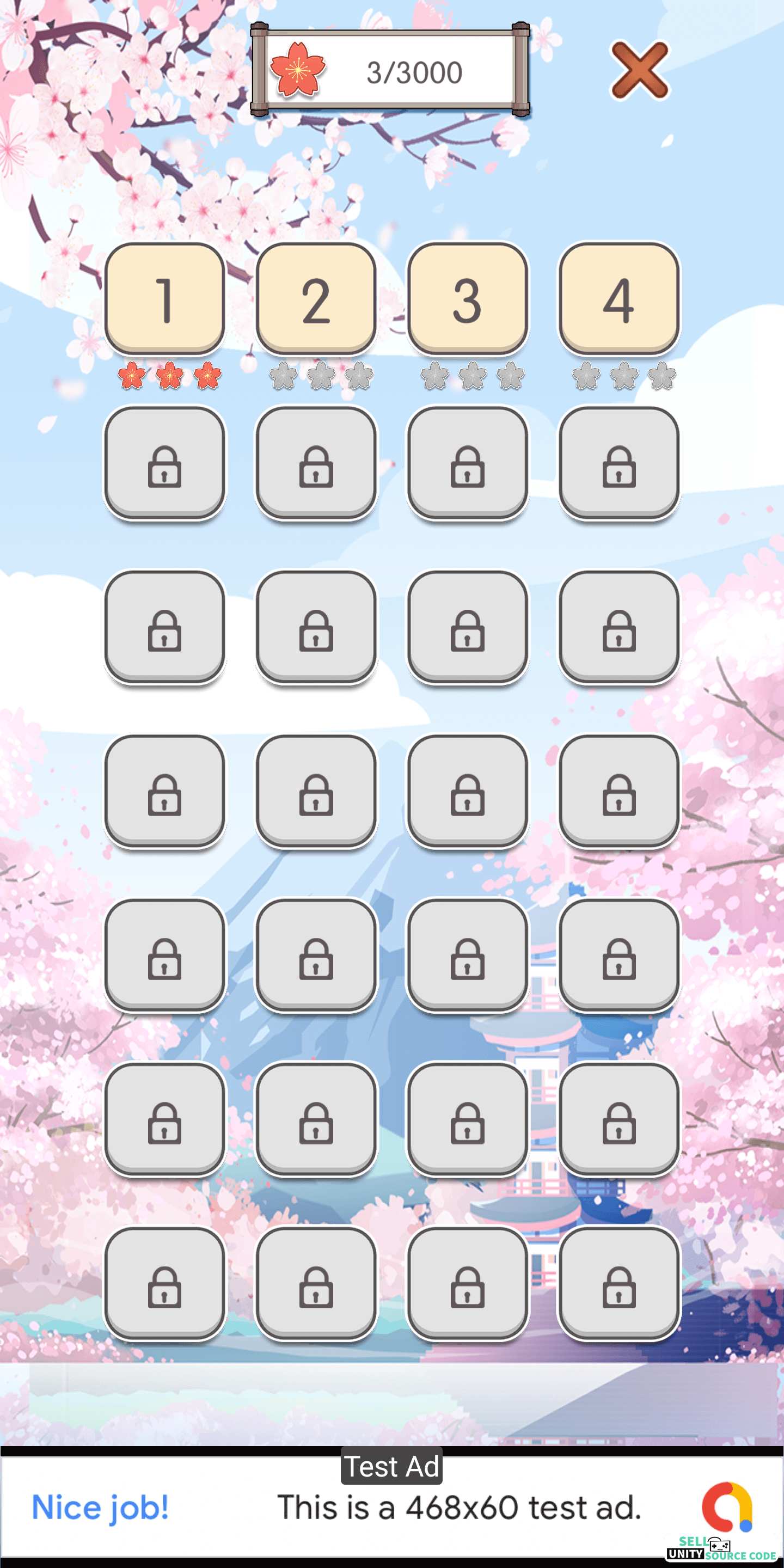 • Levels Locking: Levels can be locked and can be unlocked by the players pass the levels.