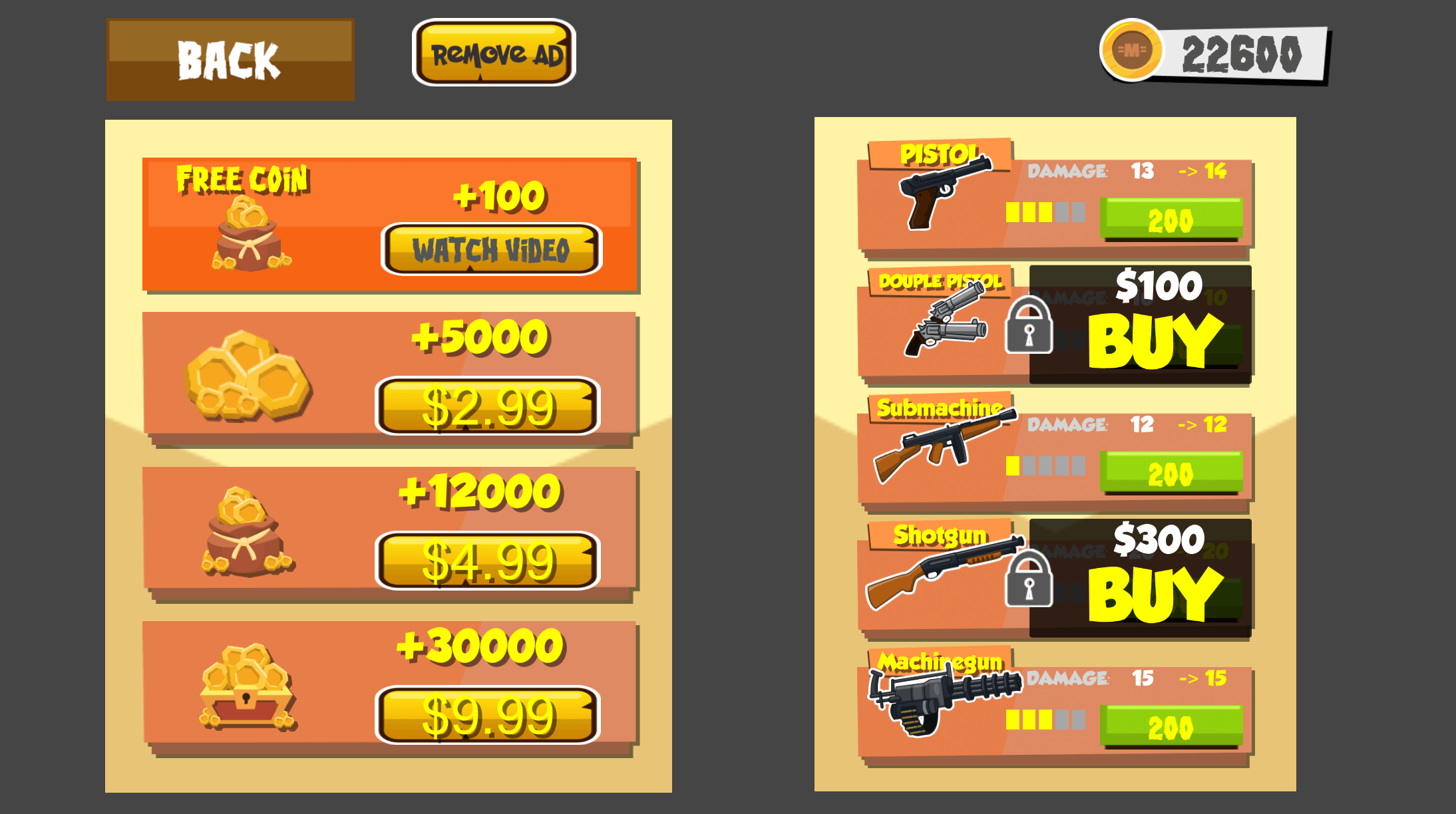 + Shop system: Buy more gun, Upgrade gun and IAP items